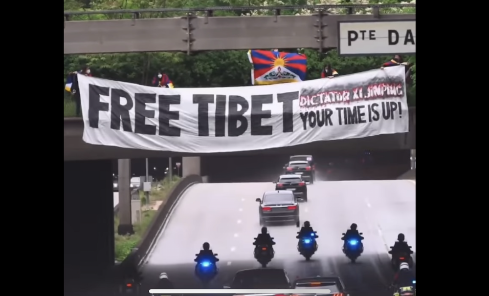 DHARAMSHALA, May 6: As Chinese President Xi Jinping arrived in Paris for a high-profile summit, a group of student activists affiliated with Students for a Free Tibet (SFT) and the International Tibet Network (ITN) staged a bold demonstration. Hanging a banner from a bridge in Paris, France, the activists called for the boycott and removal of President Xi Jinping, emphasising their message with the slogan, “FREE TIBET! DICTATOR XI JINPING, YOUR TIME IS UP!”
