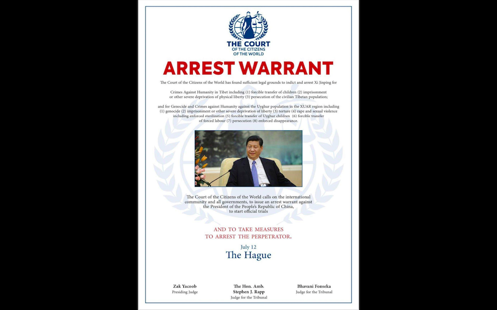 DHARAMSHALA, July 15: The “people’s court” known as the Court of the Citizens of the World charged Chinese President Xi Jinping of crimes against humanity and genocide for China’s treatment of Uyghur Muslims and Tibetans which convened from July 8-12 in Hague, Netherland.