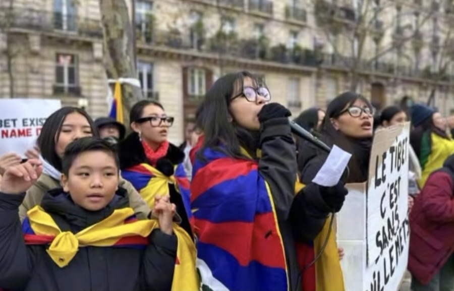 Addressing the crowd, Pema Doma highlighted the enduring struggle for Tibetan’s survival and identity. “I was born in the United States to a daughter of refugees. When my mother was born, her father was a prisoner. He spent years in prison because he was fighting for the Tibetan people. Decades later, I find myself here in Paris, fighting the same battle for the protection of our Tibetan cause and our community,” she said.
