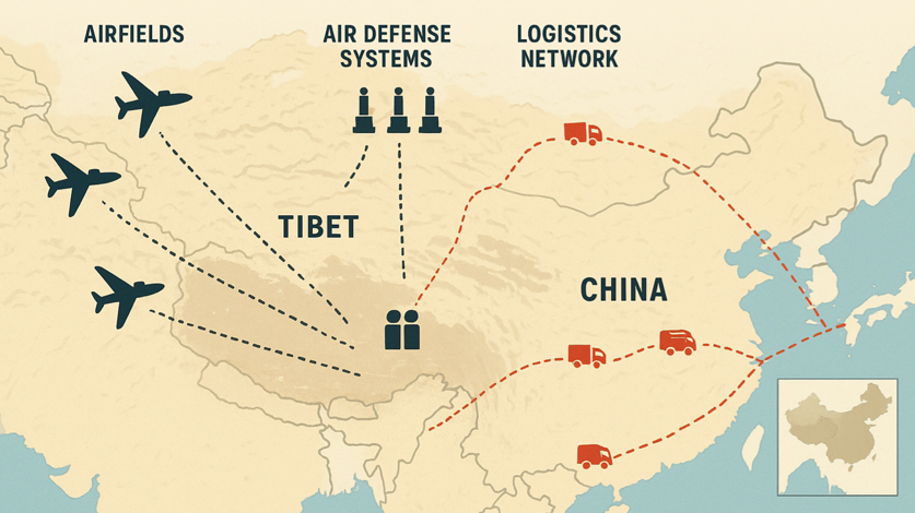China has developed extensive dual-use infrastructure on the Tibetan plateau, including high-altitude airbases, rail networks extending close to the borders (like the Lhasa-Nyingchi railway near Arunachal Pradesh), and extensive road systems. This infrastructure allows for the rapid mobilization of troops and heavy weaponry towards the Indian border, directly threatening the Siliguri Corridor and Arunachal Pradesh[5].