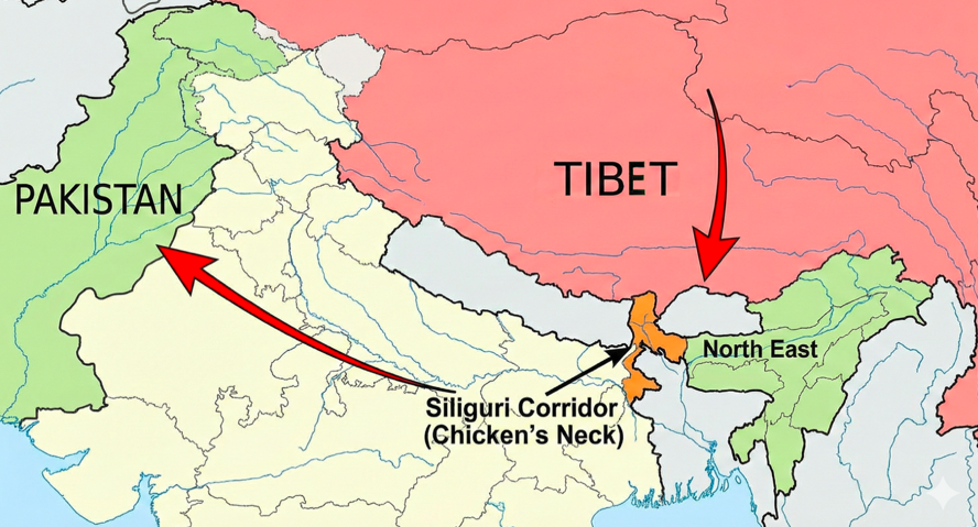 The Northeastern Region (NER) of India is a unique geopolitical entity. Sharing over 4,500 kilometers of international borders with China, Bhutan, Bangladesh, and Myanmar, it is linked to the Indian heartland by the Siliguri Corridor—a narrow strip of land barely 22 kilometers wide at its narrowest point, often referred to as the “Chicken’s Neck.”