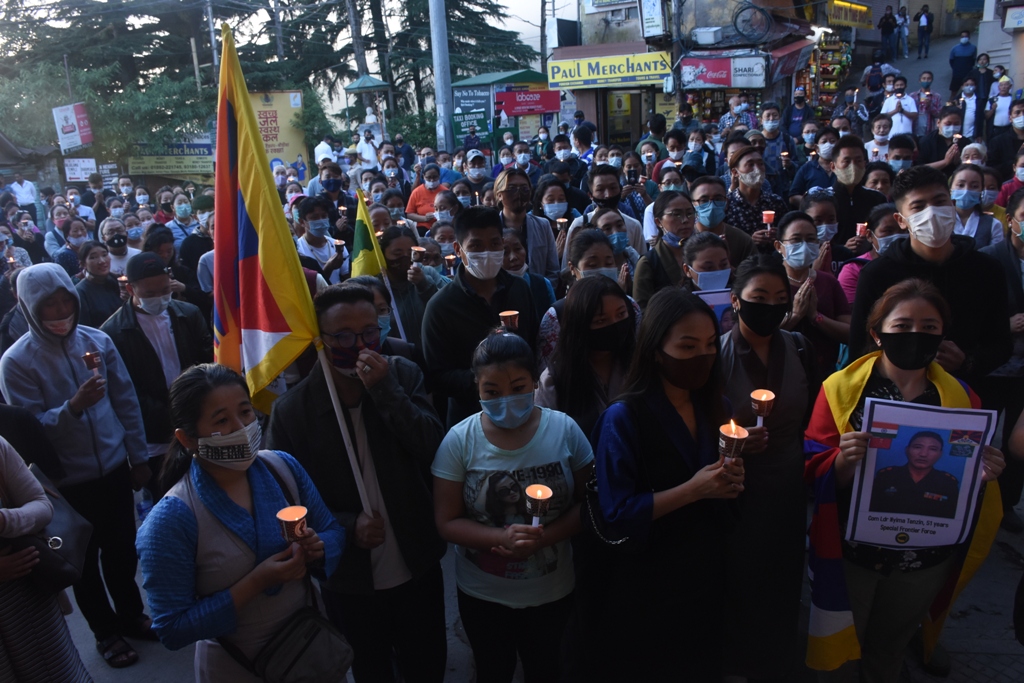 Here in Dharamshala, Tibetans gathered at McLeod Ganj, Dharamshala for a candlelight vigil to mourn the death of the fallen Tibetan soldier on Monday evening. The Tibetan soldier died on the night of the August 30, during a landmine explosion at recent confrontation near the LAC of the Indo-Tibet border in Ladakh, sources said. Prominent activist group Tibetan Youth Congress (TYC) organized the vigil where Tibetan parliamentarians, various Tibetan activist groups and local Tibetans attended.
