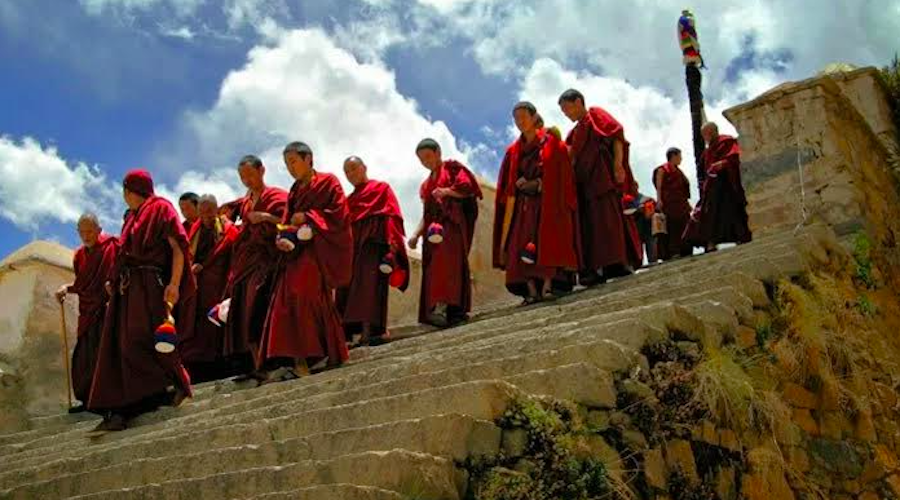 From the seventh century, during the time of Emperor Songtsen Gampo, sixteen Tibetan students were sent to India to study Buddhism. Most of them died sickness, the Indian heat and long journey on foot to distant India. Thomi Sambhota was the only one who survived the arduous journey and introduced the Tibetan calligraphy on the basis of Nagari writing. After, the introduction of Tibetan calligraphy by Thomi Sambhota, Tibetans started to translate Buddhist Sanskrit texts into Tibetan language. Many Tibetan translators travelled on foot to India with their backpacks packed with Tsampa and utensils to make the incredibly long and arduous journey to India to learn Buddhism from Indian masters and returned to Tibet to propagate it into the country. The great Marpa, the translator made three trips to India. He recalls the endless plains that he had cross and the endless passes that he had to traverse. Likewise, Chak Lotsawa (The translator Chak) writes how he had to wait for a week to cross a certain area where the buffaloes posed danger and was unable to continue his journey. For those who may not know, in Nepal, buffaloes are used for both agricultural purposes as well as for meat and milk. Often there are herds of buffaloes who chase Tibetans to gore them. This is because Tibetans smell as we come into warm and hot weather and this for some reason drives the buffaloes to chase and gore them. Another factor is the monks wear maroon robes and this attracts the attention of the buffaloes! The Tibetans invested their life and limb on the Buddha Dharma for centuries. There are monasteries everywhere in Tibet! Depending upon the size of the population, every village has a monastery because for the Tibetan people, the monasteries are the hub of the community. The shows such monk dances are both spiritual inspiration as well as entertainment. The monks are the advisers, confidante and medicaments for those who are sick and the monks also offer pujas for them to recover from their illness. If they die, the monks are the ones to perform the funeral rites and console the bereaved family. The monasteries and its monks are an indispensable part of Tibetan life! When the evil communists invaded and occupied Tibet, their number one target was the monasteries and the monk/nun community. For them religion is like poison and they vandalised every monastery and plundered centuries old treasure that ordinary people have offered to the monasteries. Communist China became rich just by pillaging Tibet’s monastic treasures which consists of gold statues in the hundred if not thousands, golden offering bowls and golden butter lamps some of them life size made of solid gold, silver and encrusted with valuables stones like coral, turquoise and lapis lazuli etc. Tibetans must realize that COMMUNIST CHINA IS DETERMINED TO WIPE OUT TIBETAN BUDDHISM IN OCCUPIED TIBET! Communists have a penchant to destroy religion and the Chinese communists see that TIBET’S RESISTANCE TO ITS ILLEGAL OCCUPATION COMES FROM THE MONASTIC COMMUNITY. Besides, it cannot tolerate the notion of the Tibetan masses having respect and adulation to the monk community. It wants the Tibetan masses to have respect ONLY for the evil CCP! It is an extremely jealous beast like a possessive partner! They demonise the Dalai Lama and call him names for the same reason!