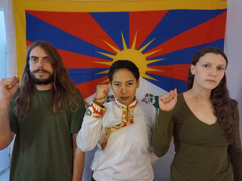 The three activists unfurled a Tibetan flag and ‘No Genocide Games’ banner to oppose the International Olympics Committee’s complicity in human rights violations by letting China host the Winter Olympics. Tibetan-Canadian activist Chemi Lhamo, British activist Jason Leith from Free Tibet and American activist Fern MacDougal were pinned down by security officials after they interrupted the ceremony with slogans in Olympia. The trio are facing charges of attempting to “pollute, damage, and distort” a historical monument, a charge punishable up to five years imprisonment under Greek law.