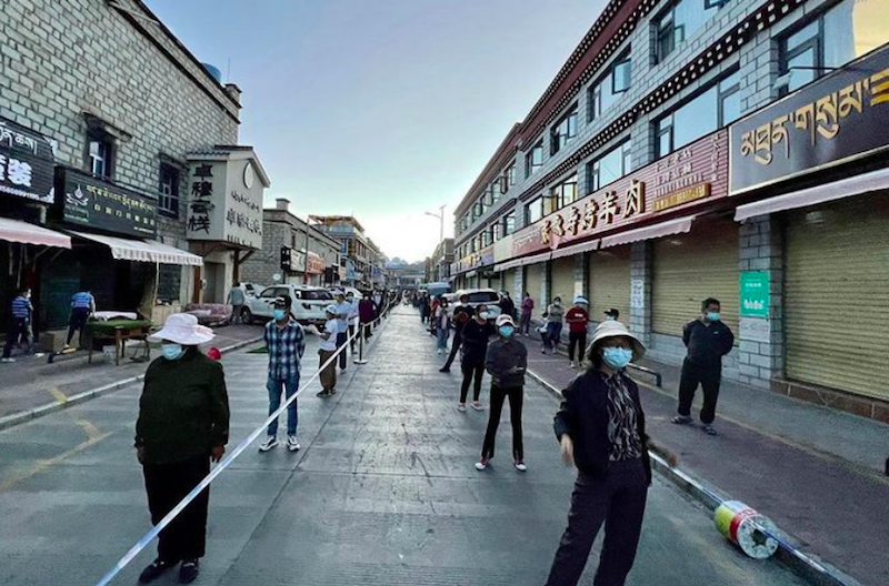 Local Tibetans line up for mass testing for Covid-19 in Lhasa (photo/Instagram)
