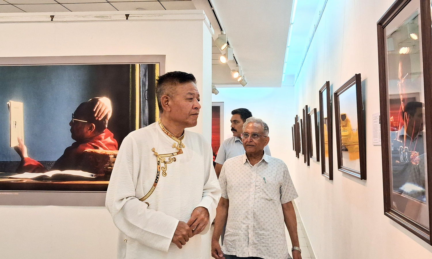 The exhibition was inaugurated on July 4 by Balbir Punj, senior journalist, columnist, and former Member of Parliament. The event saw participation from dignitaries including Wilson Chang, Counsellor at the Taiwan Economic and Cultural Centre; Jigme Jugney, Representative of His Holiness in New Delhi; and Rev. Acharya Yeshi Phuntsok, former Deputy Speaker of the Tibetan Parliament in Exile. A vibrant presence of Delhi’s Tibetan community, dressed in traditional attire, added to the spirit of the occasion.