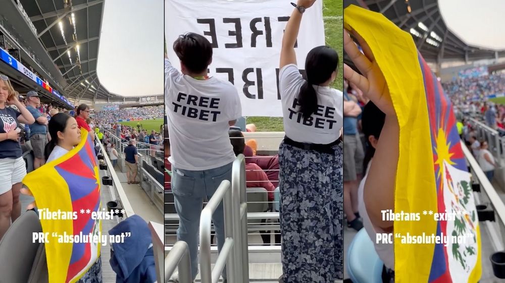 DHARAMSHALA, June 3: A peaceful demonstration organised by members of the Regional Tibetan Youth Congress (RTYC) Minnesota drew unexpected attention during the USA Women’s National Team’s 3-0 victory over China at a packed stadium in Minnesota, USA, on Saturday.