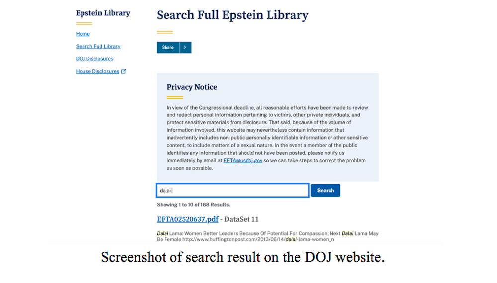 In an era defined by the abuse of power among the global elite, it is understandable why such narratives find fertile ground. For many, the allegations felt plausible simply because they mirrored a broader pattern of institutional betrayal. Few individuals possess the resources to fact-check, especially when legacy outlets ignore nuance in favor of clickbait. The tragedy is that the burden of proof has shifted. Consequently, the Tibetan community is left to defend itself against a manufactured scandal. The “truth,” unfortunately, becomes whatever is loudest. Recognizing this, we—a collective of Tibetan scholars—undertook the task of reading through all the files that have mentions of the Dalai Lama and analyzing them. The search for ‘Dalai Lama’ on the Department of Justice (DOJ) website generated a total of 156 entries, whereas the search for ‘Dalai’ generated a total of 168 entries. Two of 168 search results, EFTA01595110 & EFTA01246900, were completely unrelated to the Dalai Lama and likely a technical/clerical mistake. We have spent the past few days reading through all 168 entries. Our investigation yielded the following key findings (for chronology of mentions, see Annexure 1).