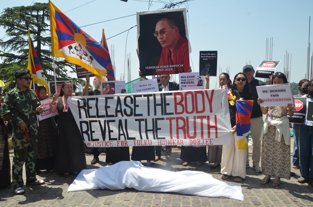 Protesters are urging immediate international intervention amid reports that authorities are preparing for an imminent cremation of Tulku Hungkar Dorje’s body – a move that activists say would destroy crucial evidence.
