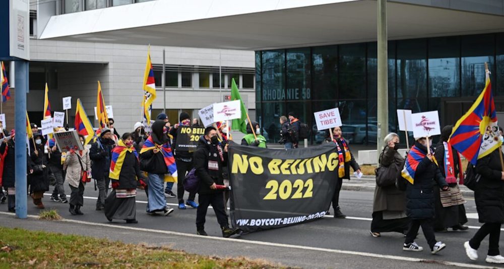 Around 500 Tibetans marched outside the IOC headquarters at Lausanne, Switzerland on Thursday, led by singer and activist Loten Namling who marched on skis dragging the Chinese flag behind him. Thupten Wangchen, a member of the Tibetan parliament-in-exile, told the Hong Kong Free Press that they were not against the Olympics but by their choice of host, “IOC: please, from now on, in future Olympics, choose a country which has human rights and freedom of religion.”