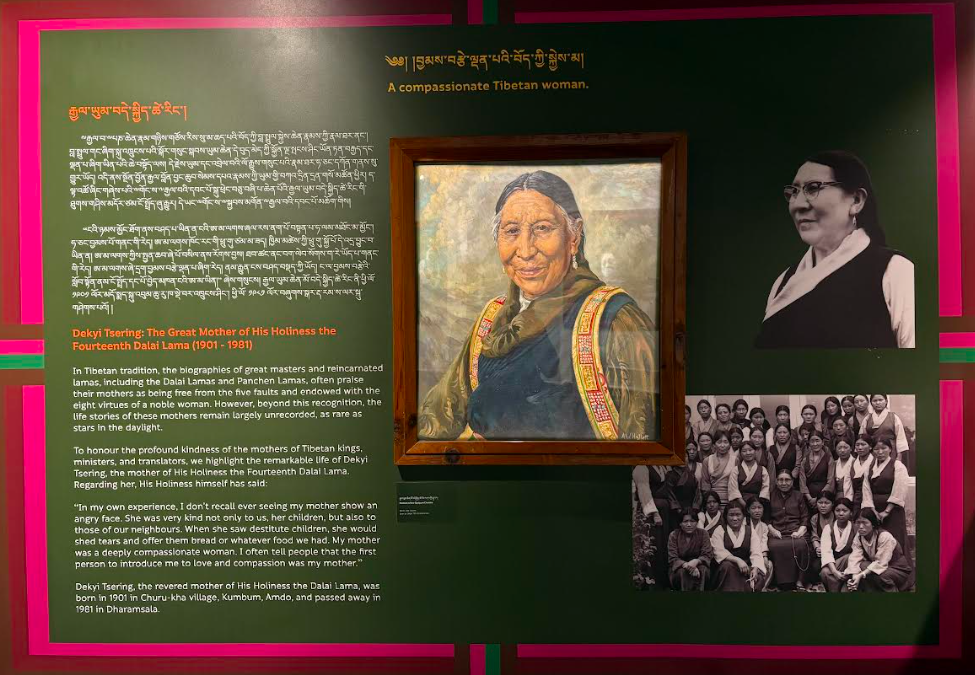 The exhibition, which coincides with the 25th anniversary of the Tibet Museum’s establishment, features notable deceased Tibetan women from 1951 to the present. It highlights patriotic women from both inside and outside Tibet who dedicated their lives to the Tibetan cause, including heroines of the resistance movement, educators, activists, and those who made significant contributions to Tibetan religion, culture, and the arts. A special emphasis is placed on the compassionate Tibetan woman, the Great Mother of Tibet, Diki Tsering—the mother of His Holiness the Dalai Lama—through a dedicated section featuring historical photographs and biographical information.