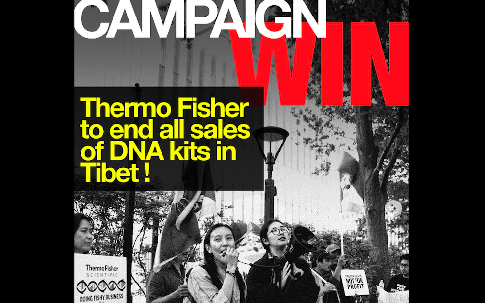 Fellow activist Tenzin Yangzom from International Tibet Network said, “Successfully getting the world’s largest biotech company – Thermo Fisher – to listen and change its policies is no mean feat, but this is exactly what the Tibet movement has done! As we celebrate this success we also want to remind Thermo Fisher that we will be monitoring their actions to ensure they keep the commitment to end their complicity in China’s mass DNA surveillance of Tibetans.”