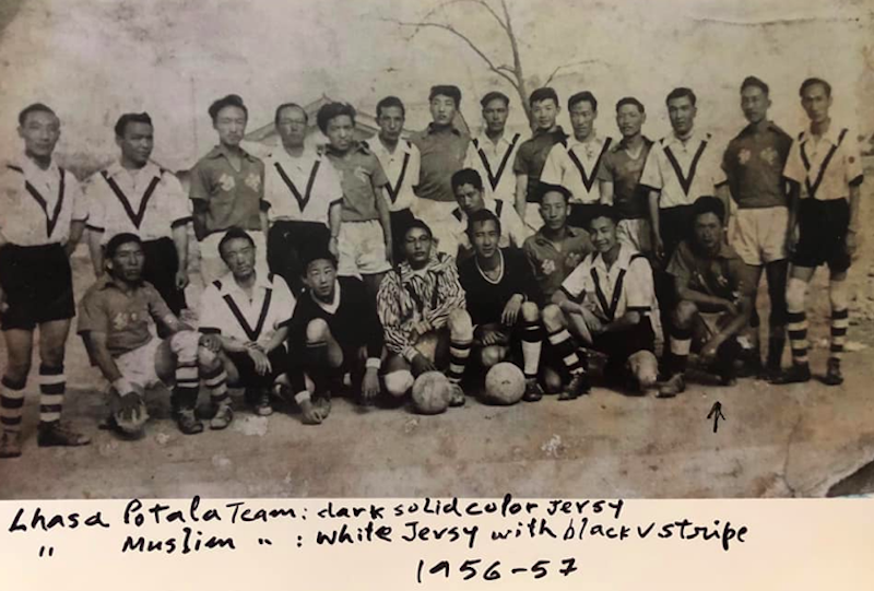 Possibly the most notable part of the photo was the uniforms the players wore. Uniforms are about more than aesthetics. I was told that the solid color of the Tibetan jersey (Lhasa Potala team) was maroon, probably symbolizing allegiance to the faith. The jersey of the Muslim team, on the other hand, was white with a single V stripe running from the shoulder to the middle of the chest. This was very interesting, as it may provide answers about some of the photos of our early school teams. Although Tibet has never been a market for Manchester textiles, there is a kind of Manchester in the uniform.